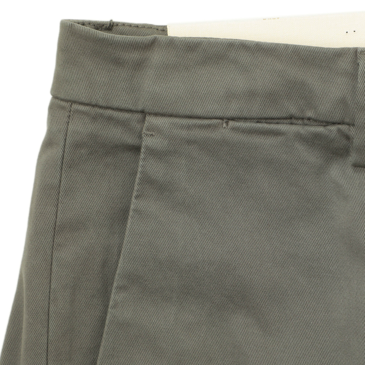 素材はコットンストレッチ。サテン織りを採用することで光沢感のある美しい生地感を表現し、薄手の生地+コットンの持つ特徴でサラッとした肌触りの良さも実現しています。また製品洗いを施すことで程よく生地のハリも落ち、ステッチ部分やポケットなどにアタリが生まれ、新品感なく最初から手持ちのアイテムとの馴染みを感じていただけるはずです。