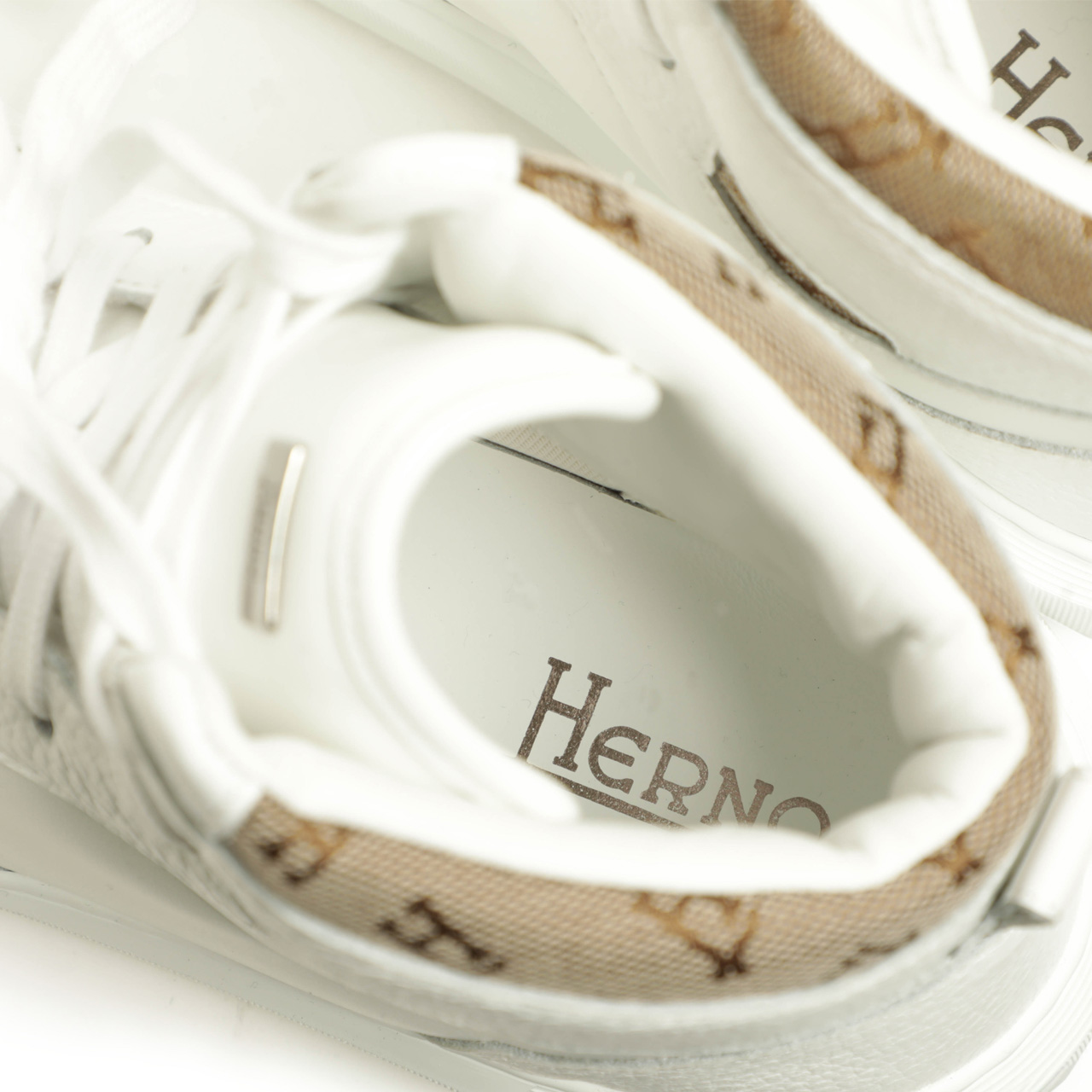 ヘルノ / モノグラム ハイカット レザーレースアップ 厚底 スニーカー/ SH012UM 1021 / ホワイト×ベージュ