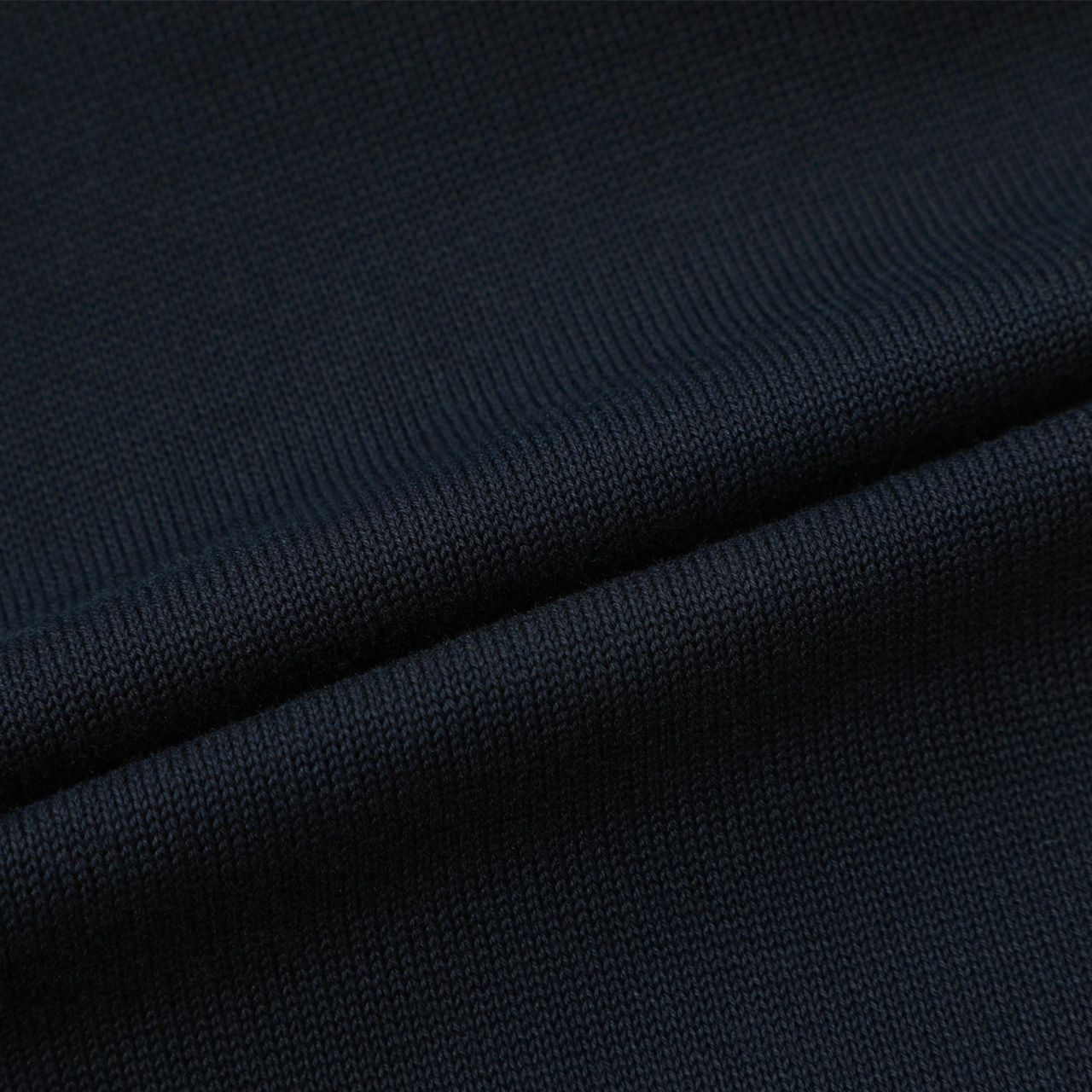 素材はコットン 100%。クレープコットンというドライでサラッとした風合いが特徴のコットンニットを使用しており、汗ばむ季節でもベタつきにくく快適な着心地を味わえます。