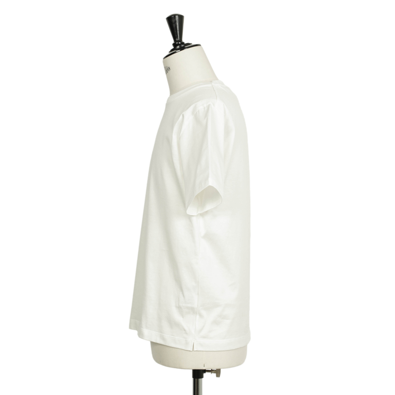 それがこちらのクルーネックカットソー。今季もう一型作成していますが、こちらは襟リブ、裾にスリットを入れたのみのシンプルなデザインの一着になります。