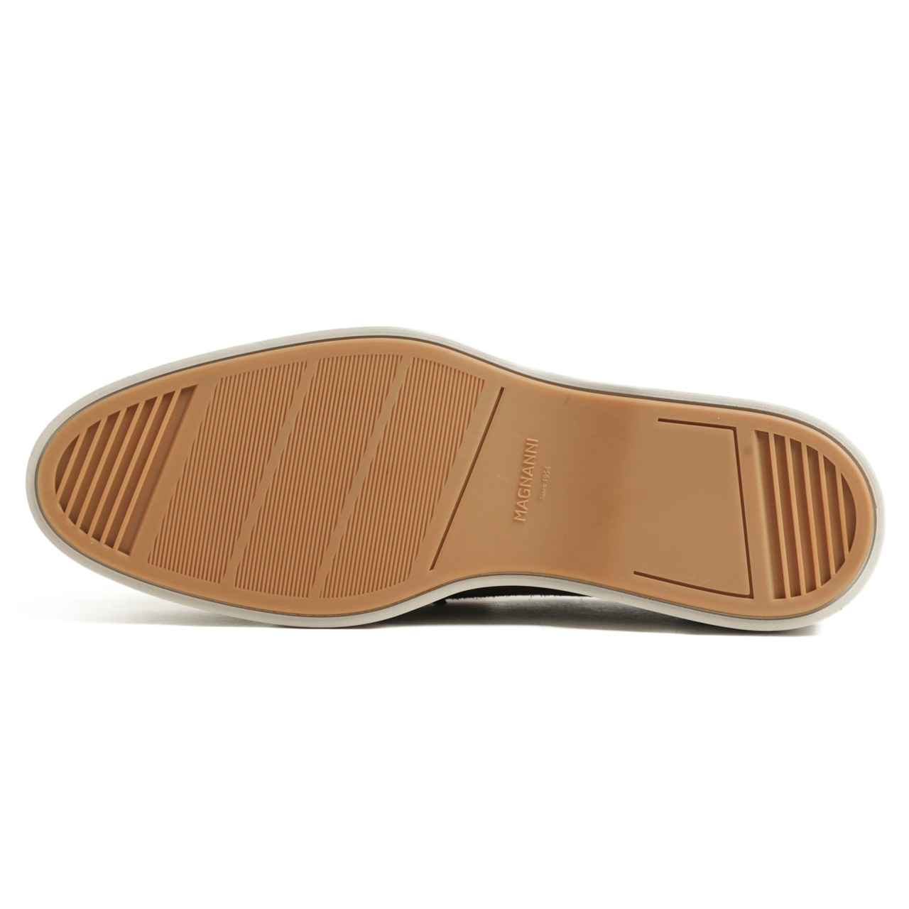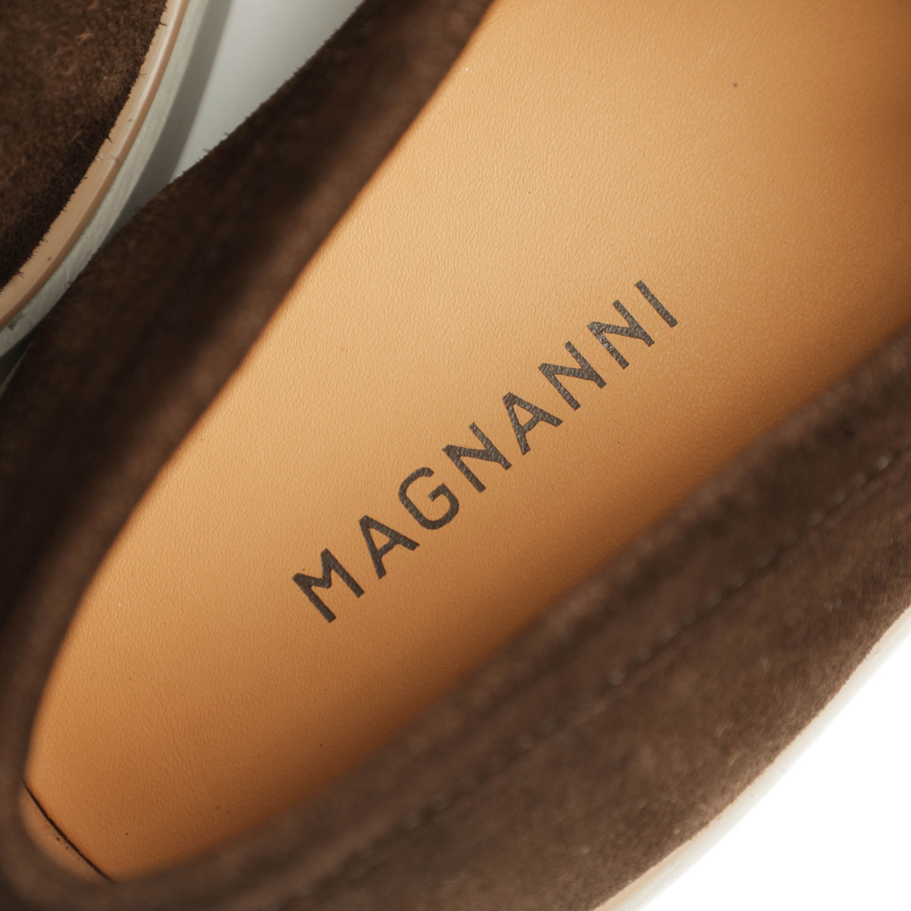 ソールとアッパーの間にひとつパーツを挟み込み、このひと手間でカジュアルなモデルにエレガントな味付けをプラス。この辺りの気の利いた作りがMAGNANNIらしい所では。