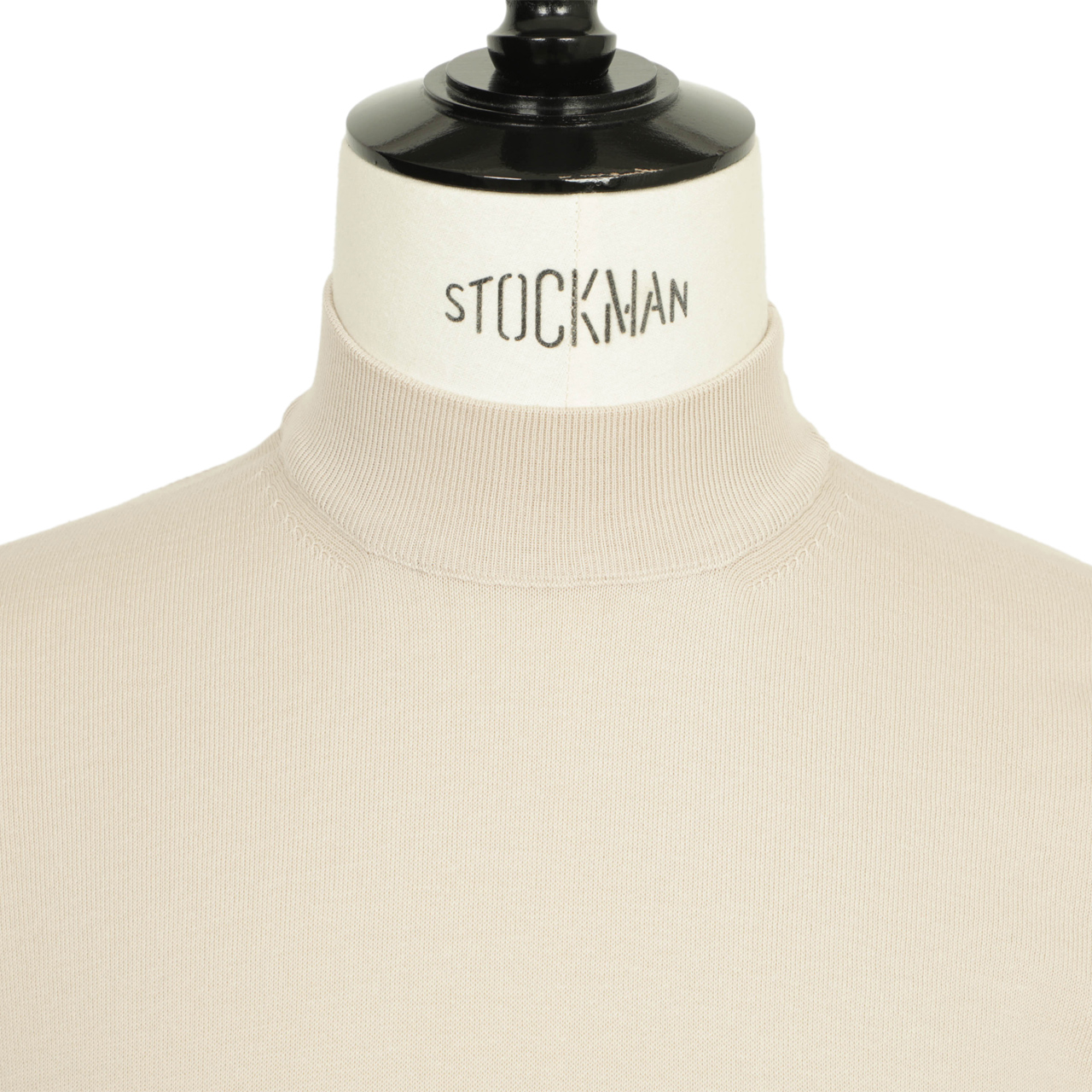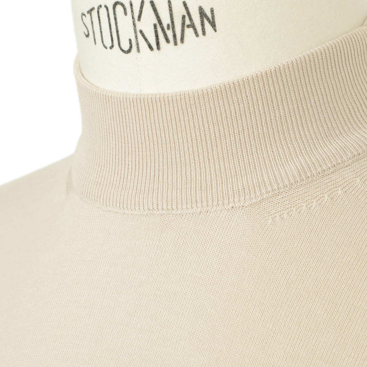 モックネックデザインはクルーネックに比べて品よく見える上にジャケットやシャツのインに合わせた時に襟周りに皮脂がつきにくくなる為、デザイン的にも機能的にも嬉しい一着です。