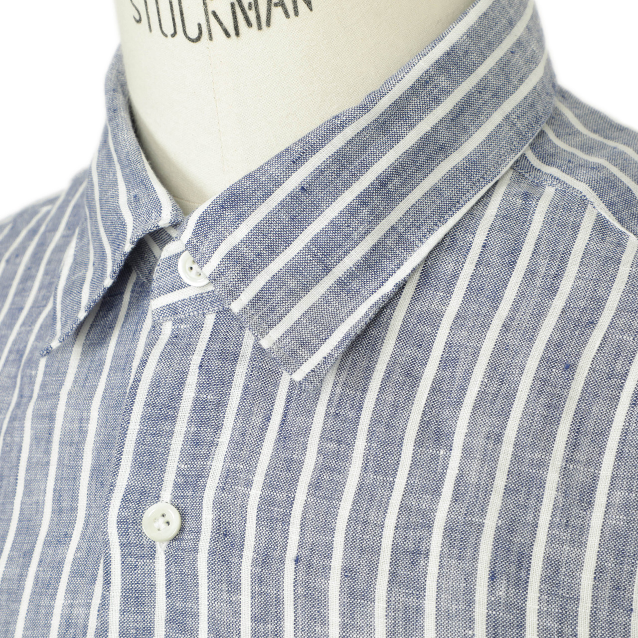 今季は春夏の定番素材「リネン」を使用したストライプシャツをご用意しました。太めのピッチ、ホワイトの分量多めで春夏らしい爽やかさが演出されているストライプシャツで、リネン100%の生地で着込むほどに生まれるシワの立体感がこなれた雰囲気も出してくれる一着です。