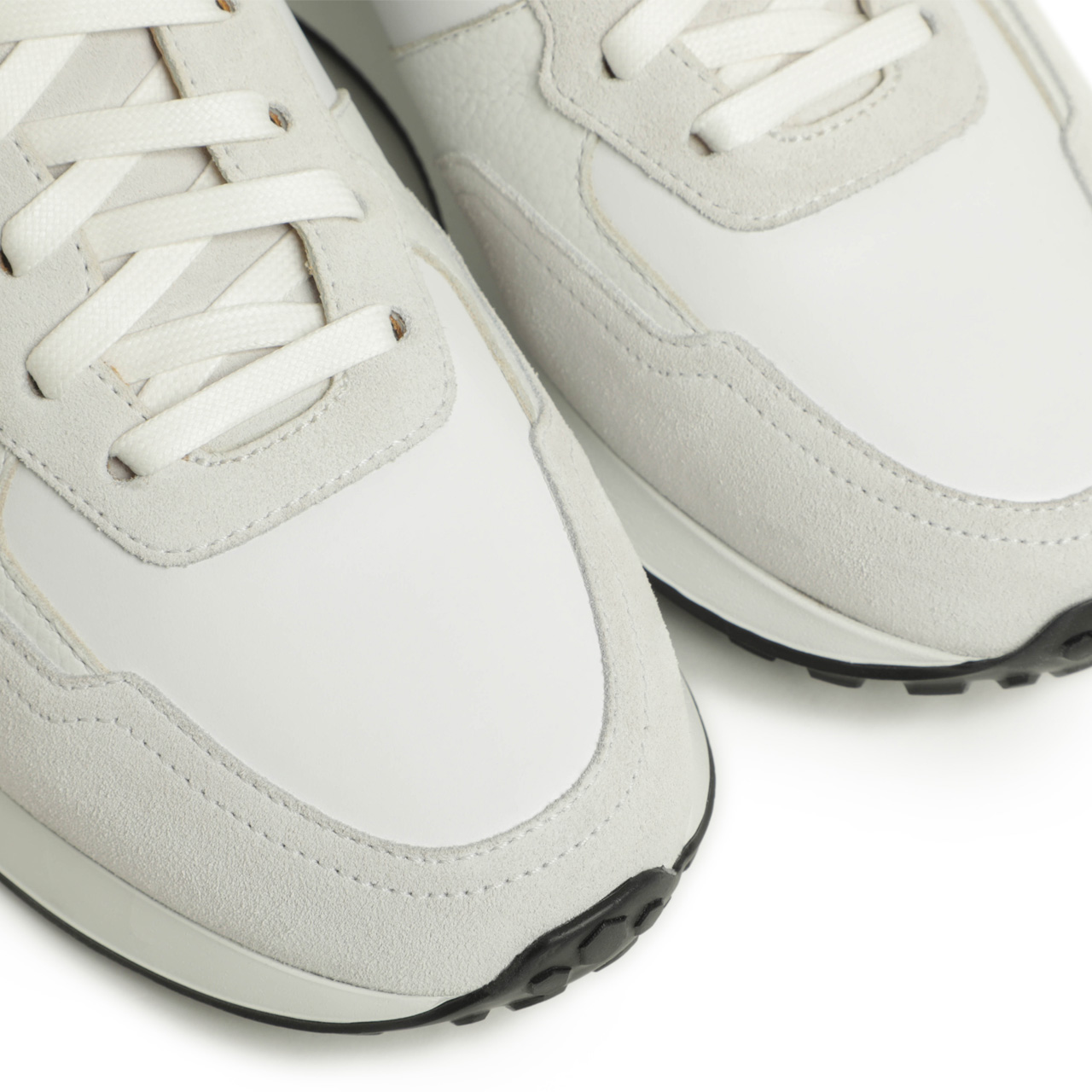 やはり注目は素材。スムースレザー、スエード、シボ革の3種類のレザーの切り替えでアッパーを表現。ベースの部分にはスムースレザー、トゥやアイレット周りの部分はスエード、サイド、ヒール部分などにシボ革を合わせてさりげないアクセントをプラスしています。
