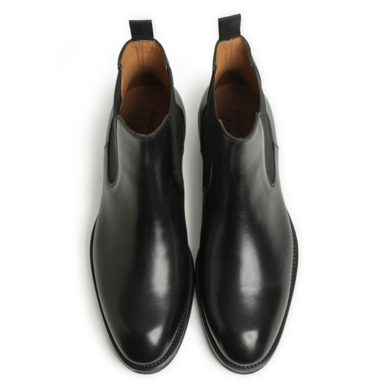 マグナーニ / パティーヌ仕上げ カーフレザー プレーントゥ サイドゴアブーツ ラバーソール / ボロネーゼ 製法 / 25559 /ブラック