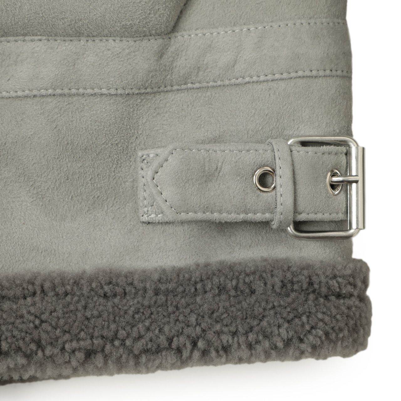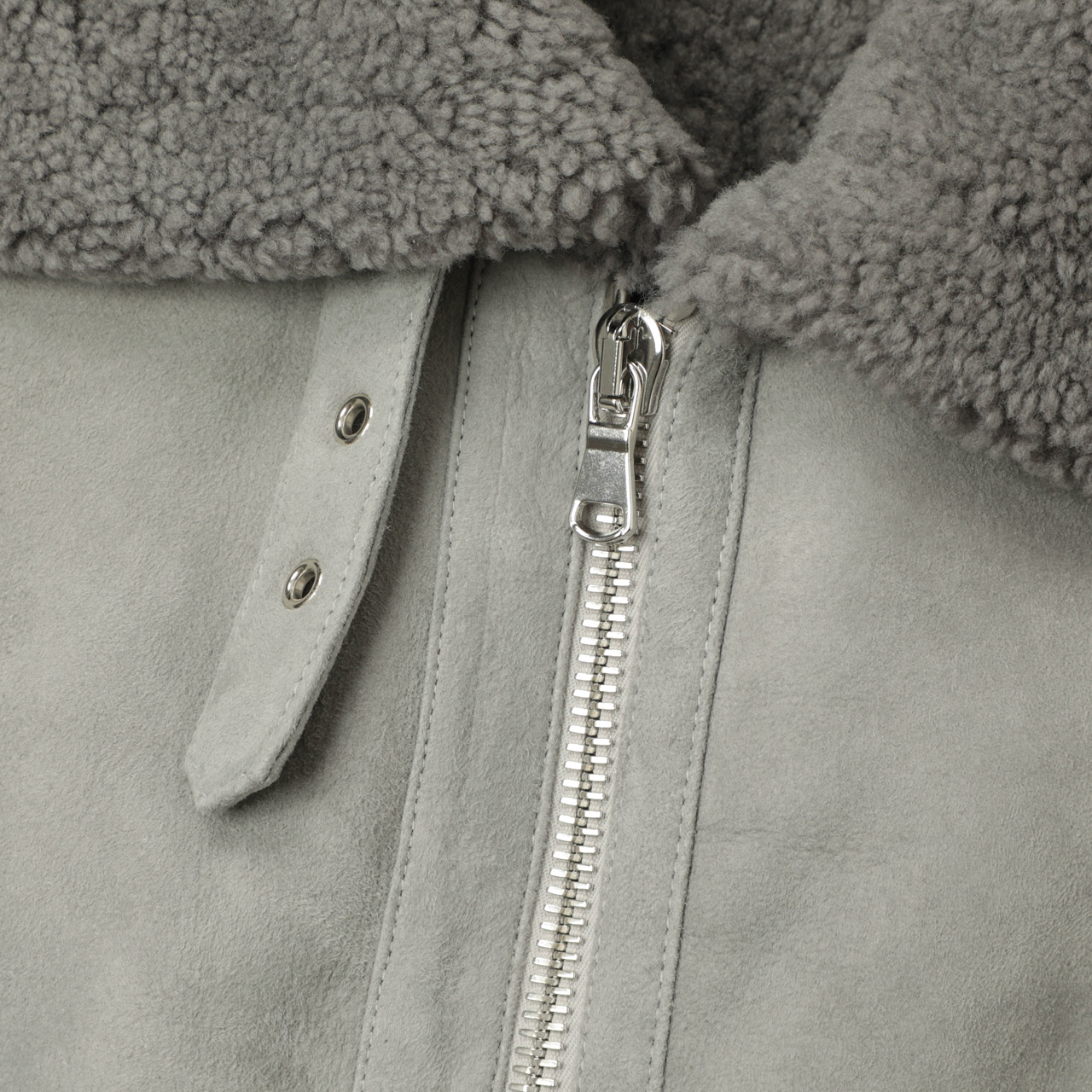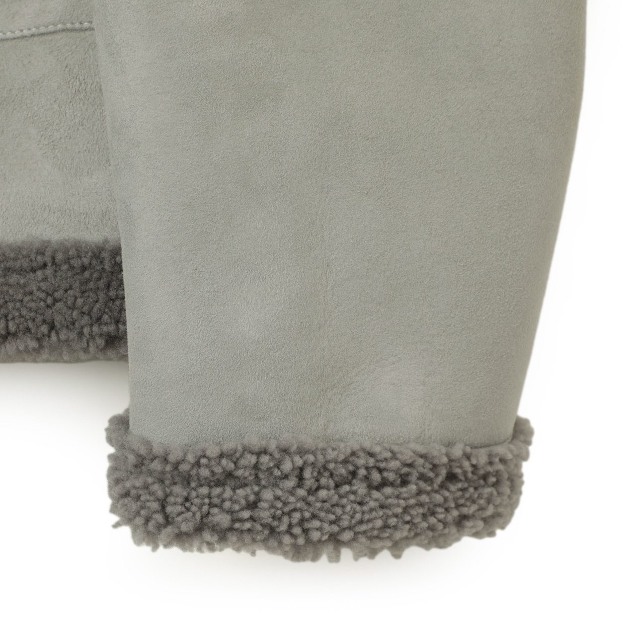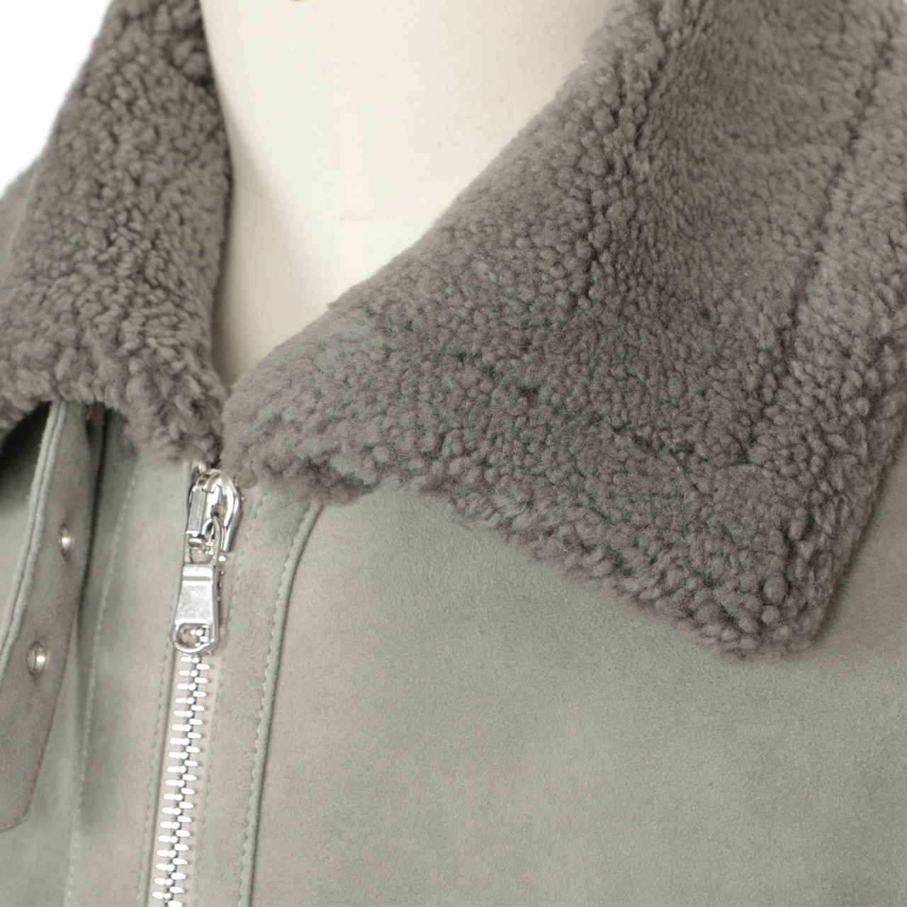 素材はシープスキン(ムートン)。肉厚ながら非常にソフトでキメの細かなシープスキンは着る方を暖かく包み込み、マットな質感がシックな大人の雰囲気を醸し出します。今季は表の素材を従来展開のカラーと変えて、全面スエード調に起毛させており、より落ち着いた品のある風合いに仕上がっています。