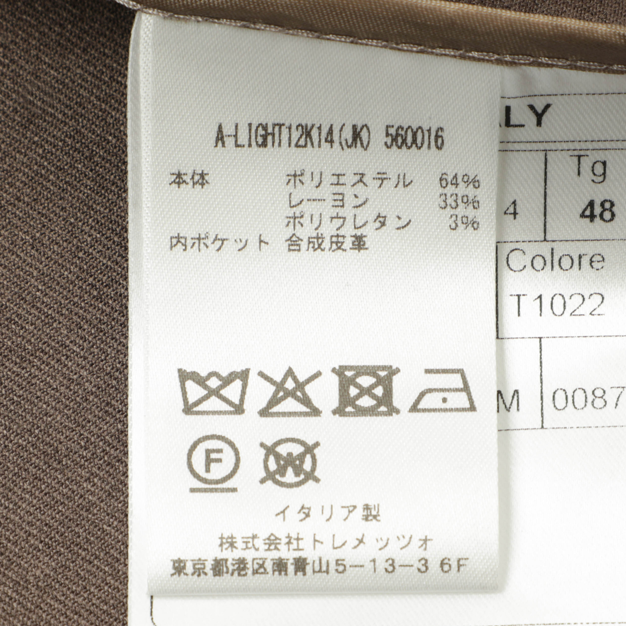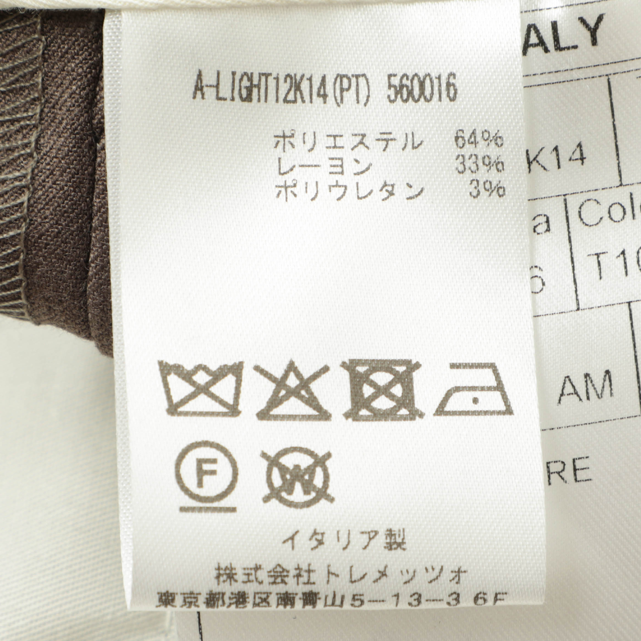 | 素材 (ジャケット・パンツ表地) | ポリエステル 64% レーヨン 33% ポリウレタン 3% |
