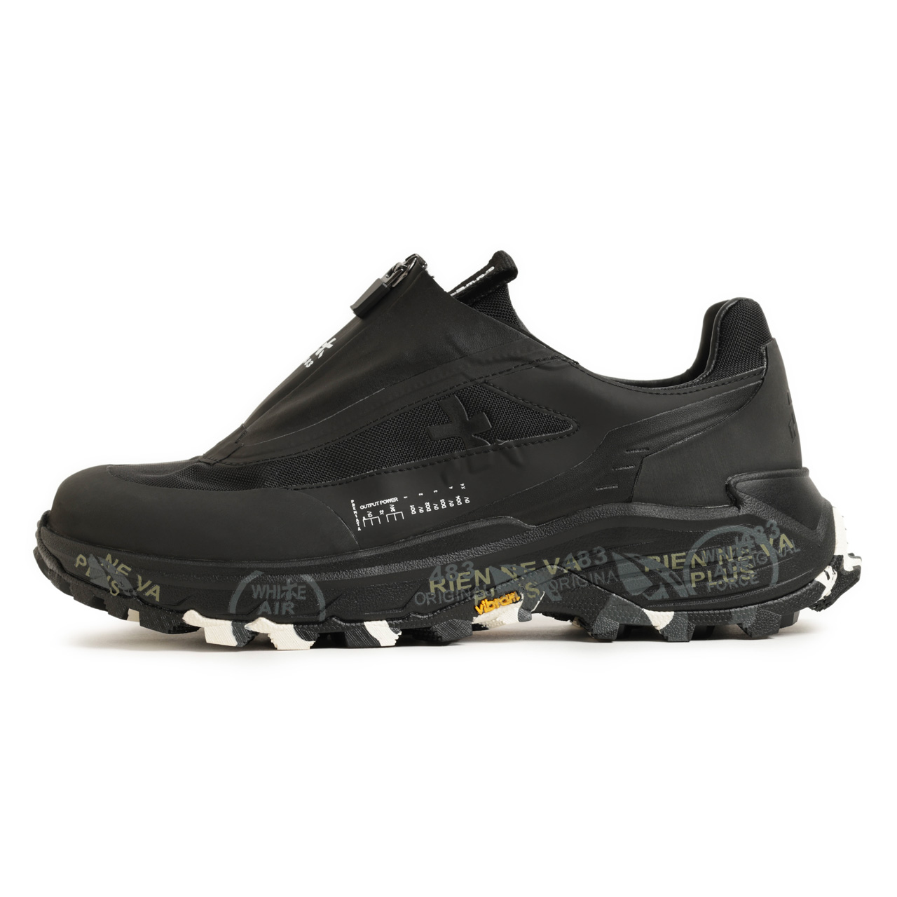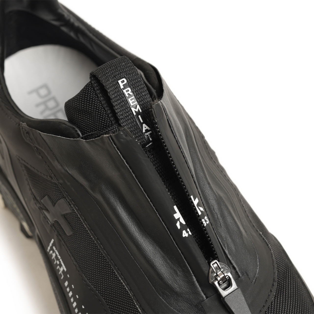 プレミアータ / カーフレザー ナイロン ポリウレタン レースアップ ジップ ローカット 厚底 スニーカー/ SCILIAR / ブラック