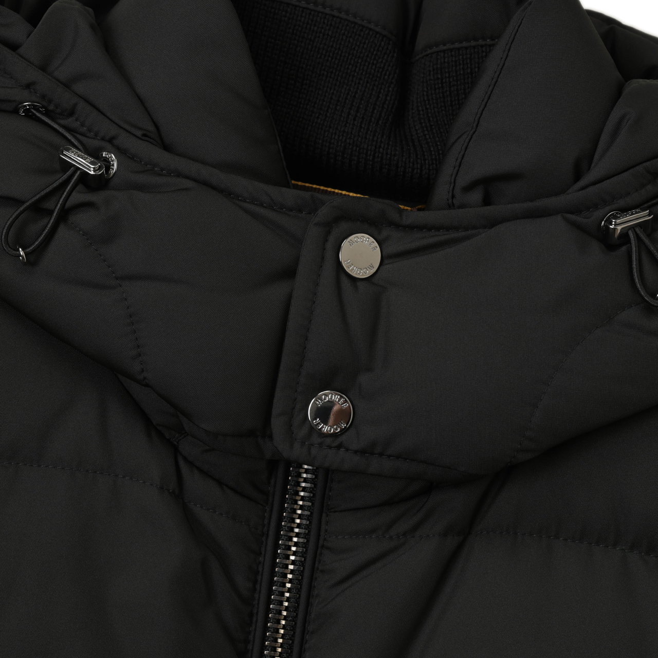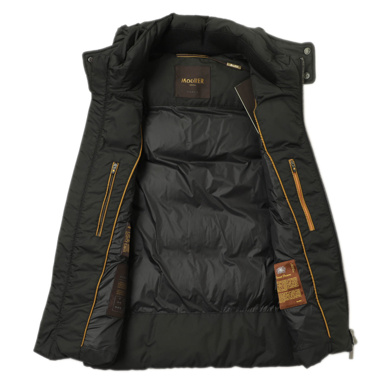 最高級ホワイトグースダウンを贅沢に使用しながらも、スッキリとしたフォルムが特徴であるMooRERの中では、ややボリューム感あるルックスが特徴。