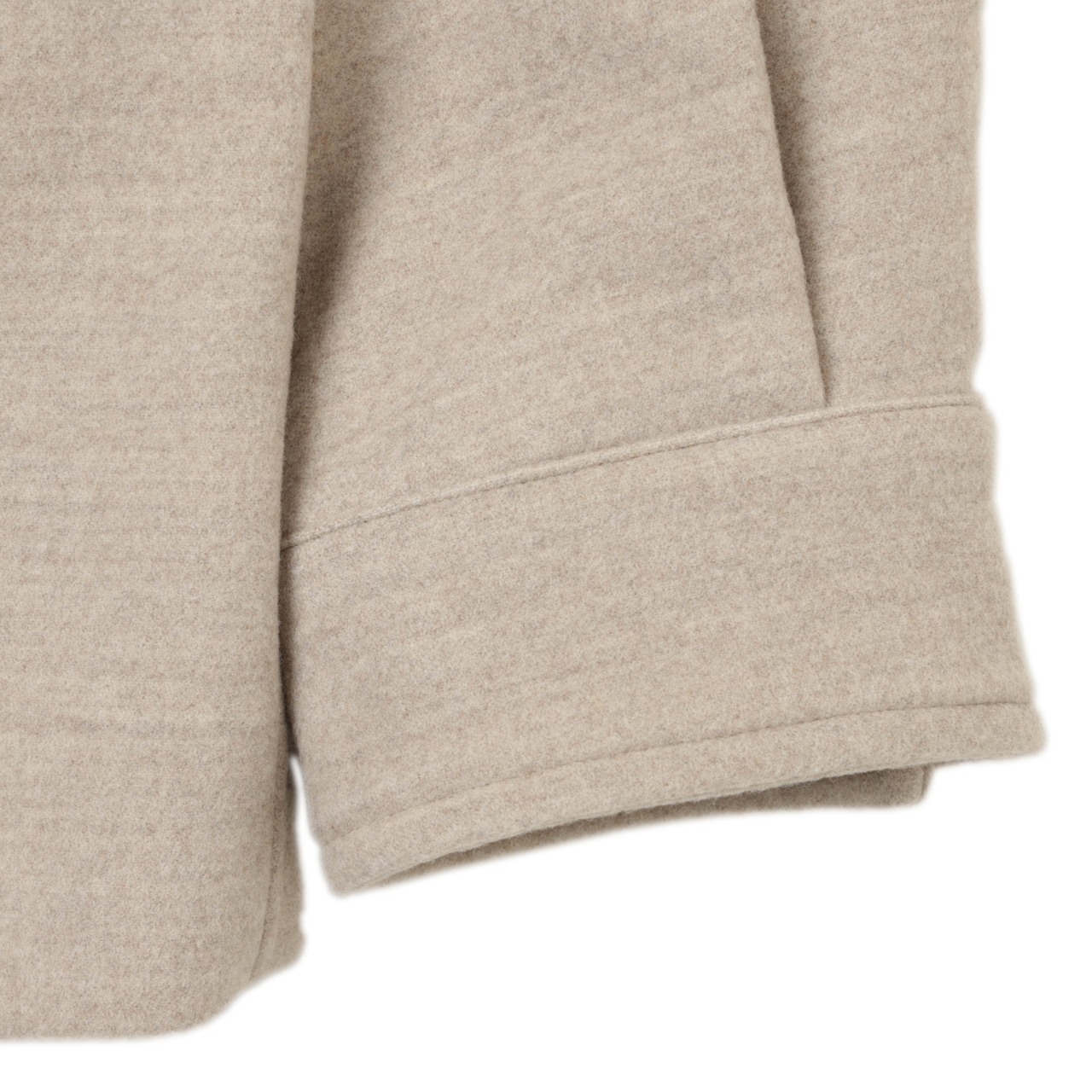 カラーはベージュをオーダー。メランジ調のカラーで程よくカジュアルな印象に。ただ上質な生地感できれいめなスタイルにも勿論ハマりますので、幅広いスタイリングをお楽しみいただけます。