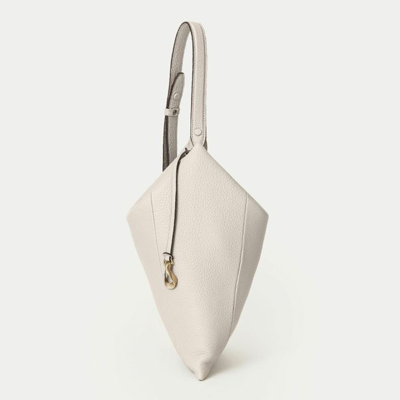 まるで幾何学模様の頂点をイメージさせるようなシャープなフォルムが、何気ない日常の装いに印象的な存在感を添えてくれる、トライアングルショルダーバッグ。