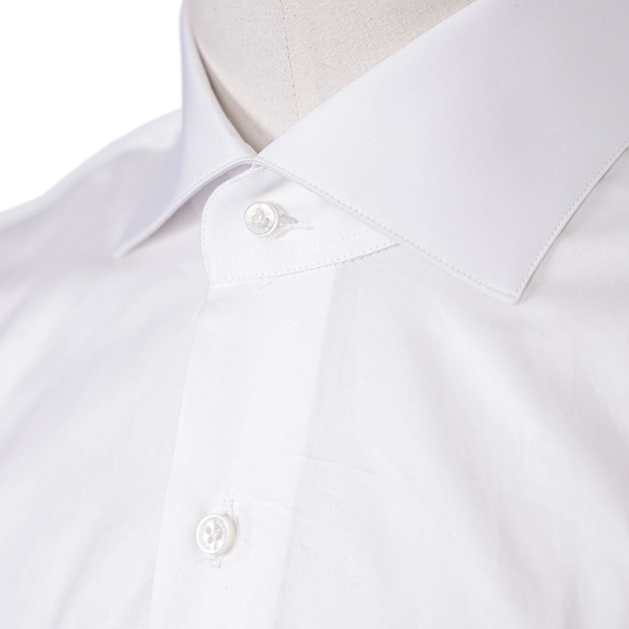 トップボタンは厚みを変えず、通常ボタンの大きさから一回り半位小ぶりにした事で、スムーズにネックのボタンを留める事が可能になっております。