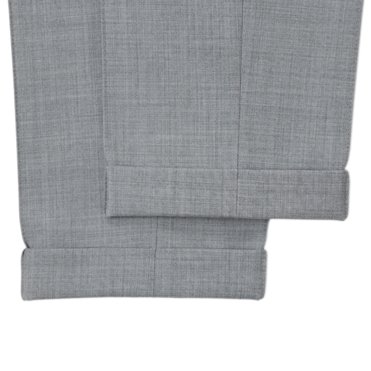 裾はクラシックなシューズでもアクティブなスニーカーでも違和感のない3.5cm幅のダブル仕上げに。 ワタリには程よくゆとりがありますが、裾にかけてはしっかりとテーパードを効かせた、絶妙な塩梅でパターンメイクされたシルエットが特徴。