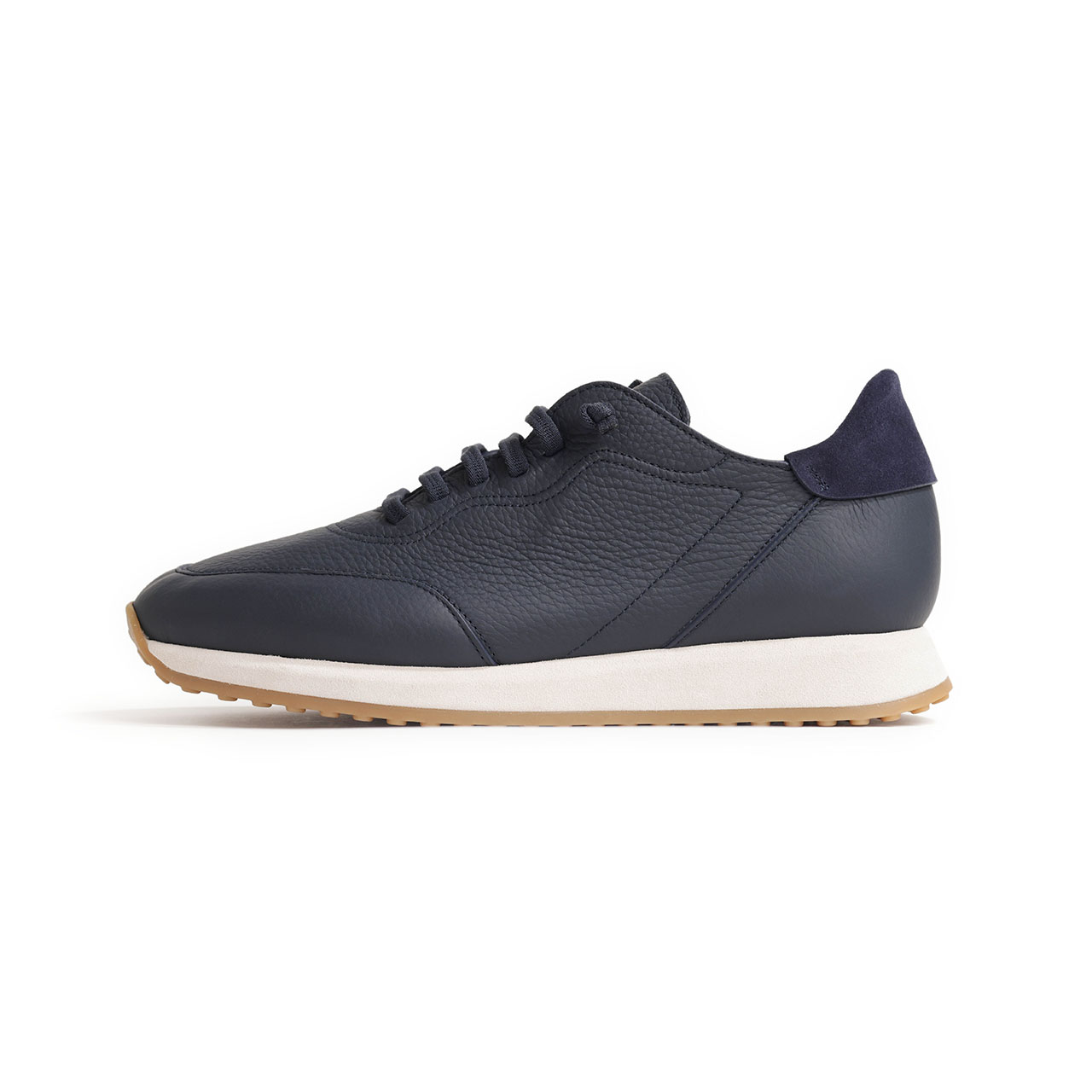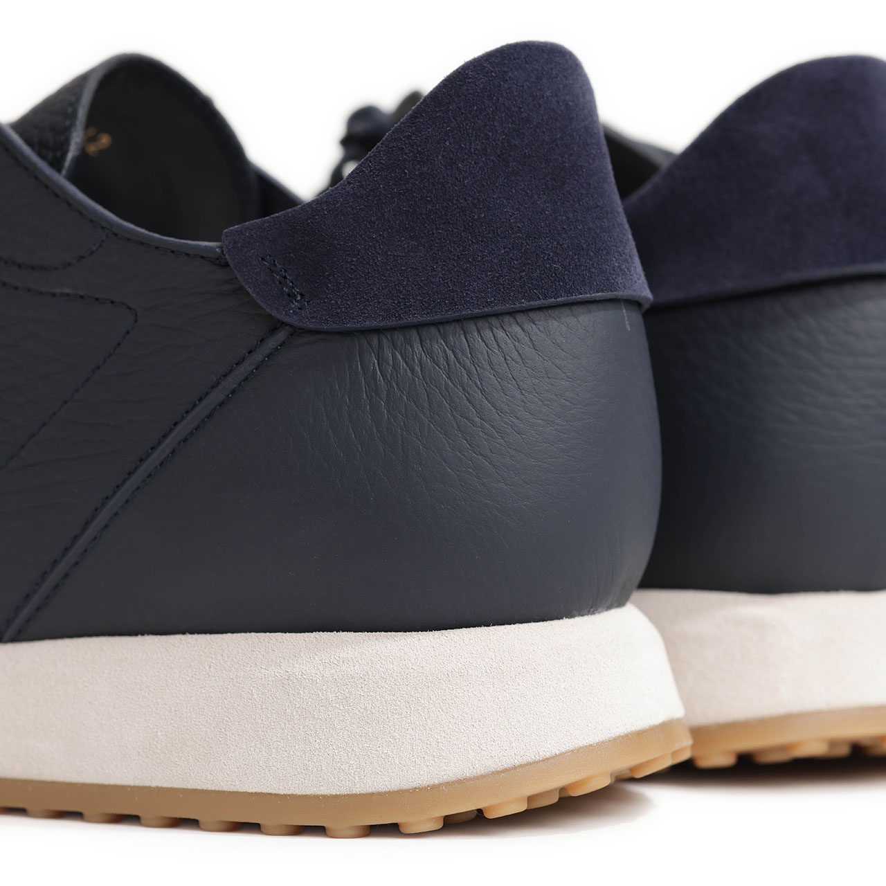 ペルノイ×ファビアノリッチ / シボ革 ローカット レースアップ ラバーシューレース スニーカー / U1697 / ネイビー