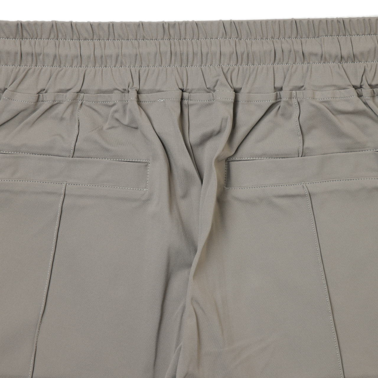 作りも特徴的。ウエスト周りはサイドからバックにかけてシャーリングデザインを採用し、フロントにはドローコードを。それでいて裾はダブルというコンフォートでありながらクラシカルな仕様といういいとこどりなデザイン。