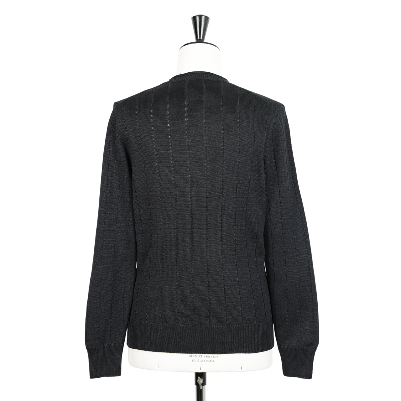 グランサッソ / ストライプ ハイゲージ コットン リネン クルーネック ニット / 23190 18665 / ブラック