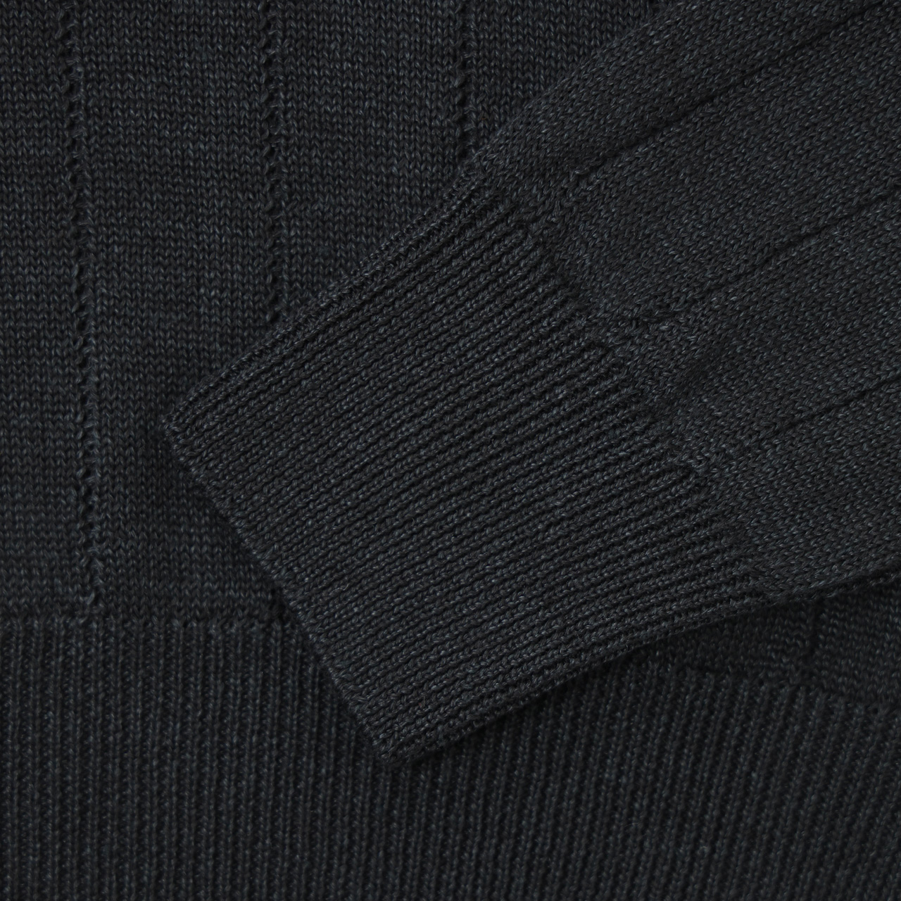 編地切り替えによるストライプ柄は立体的に見えることに加えて、肌の接地面が減る為デザインと機能性を兼ね備えた一着になっております。