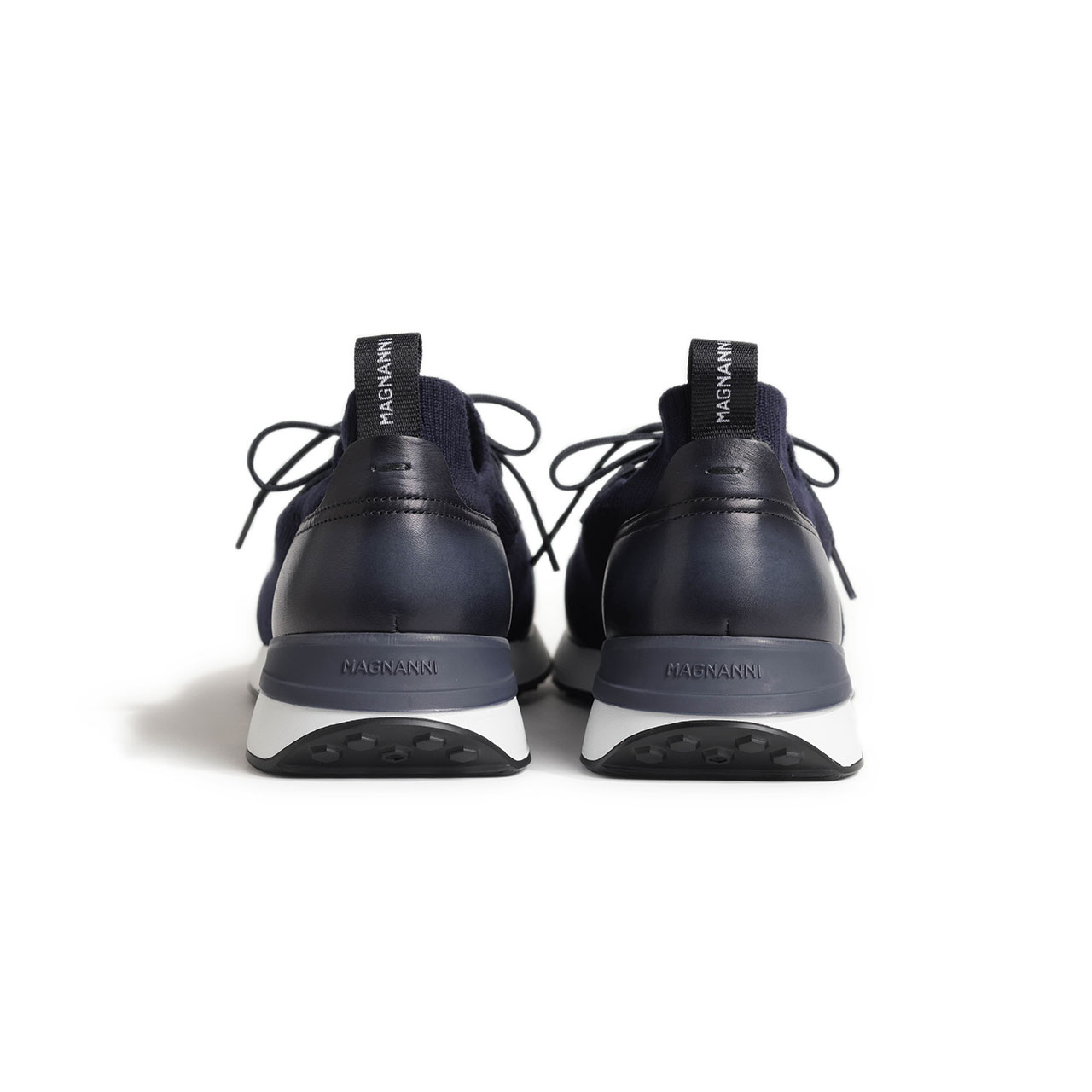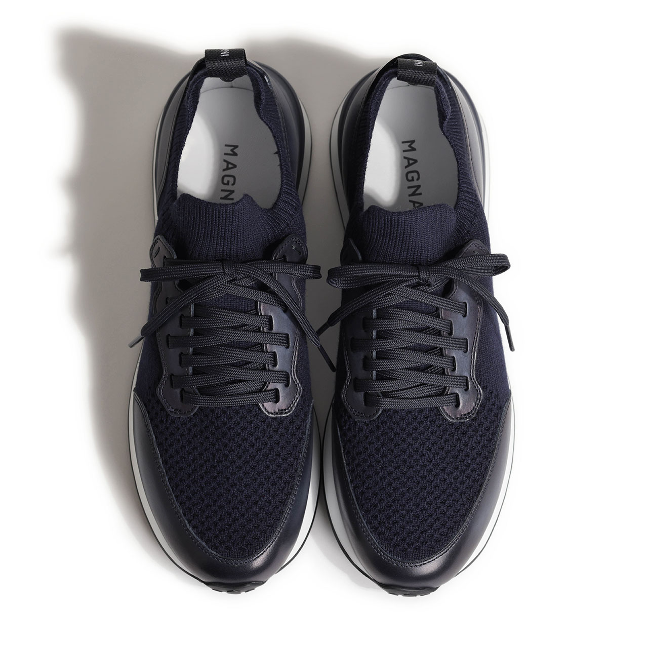 マグナーニ / ニット カーフレザー ローカット レースアップ 厚底 スニーカー / 26069 / ネイビー