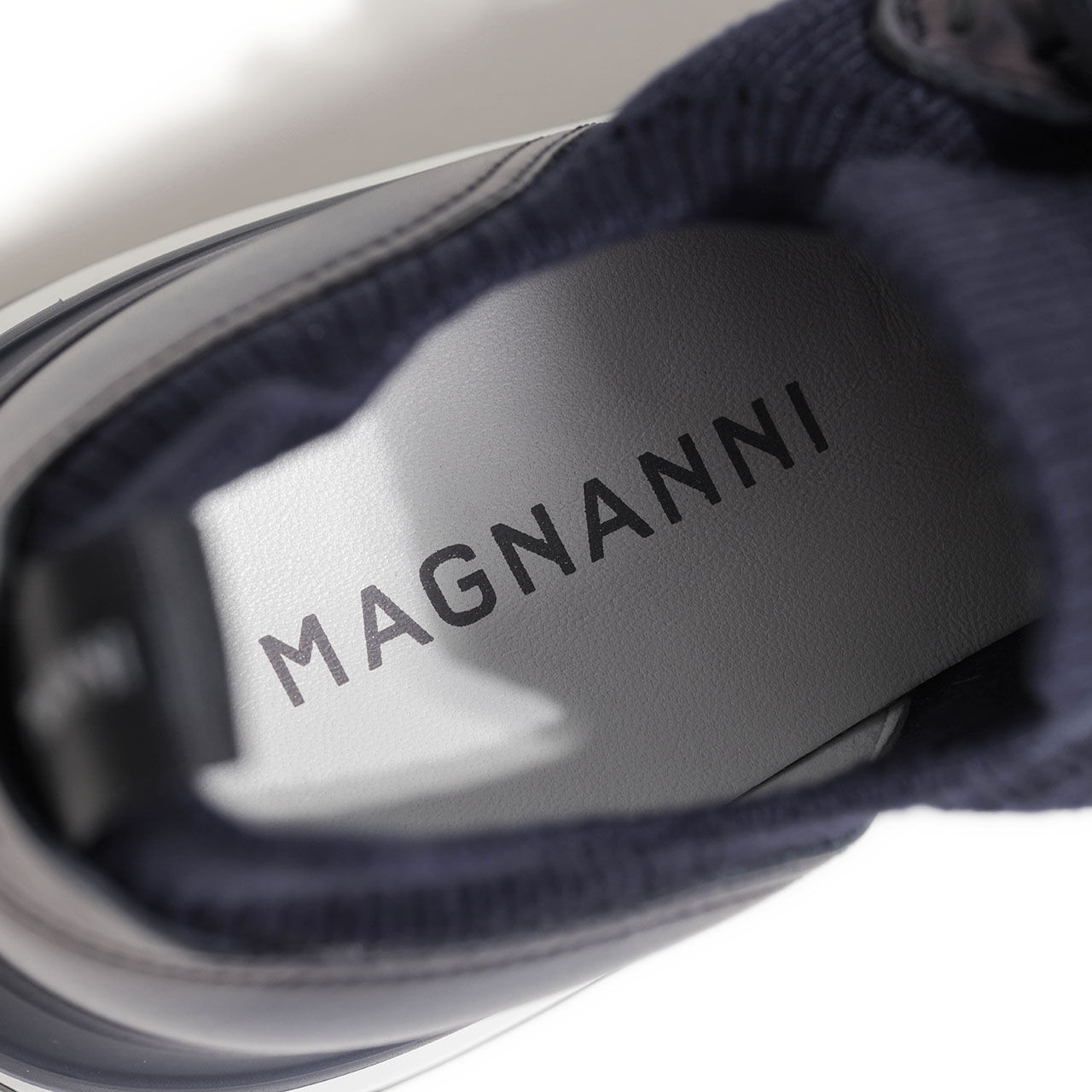 アイレット部分、ヒール部分の補強にはMAGNANNIらしいきめこまかなカーフレザーを使用。自然なレザーの艶がスニーカーに品の良さをプラスしています。