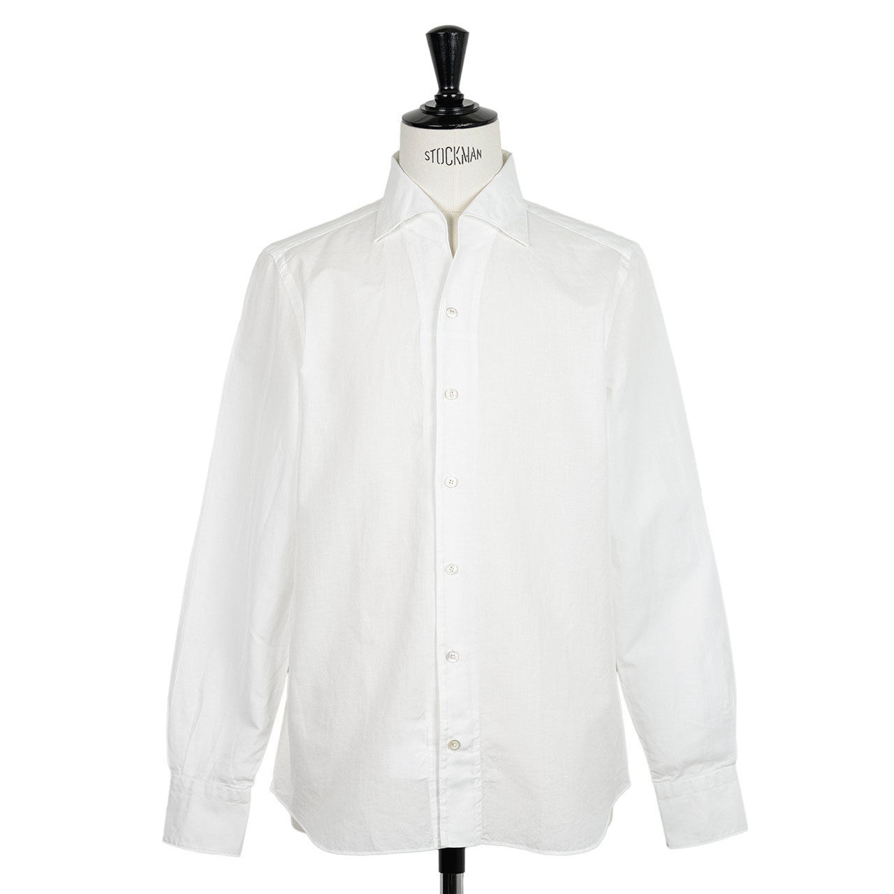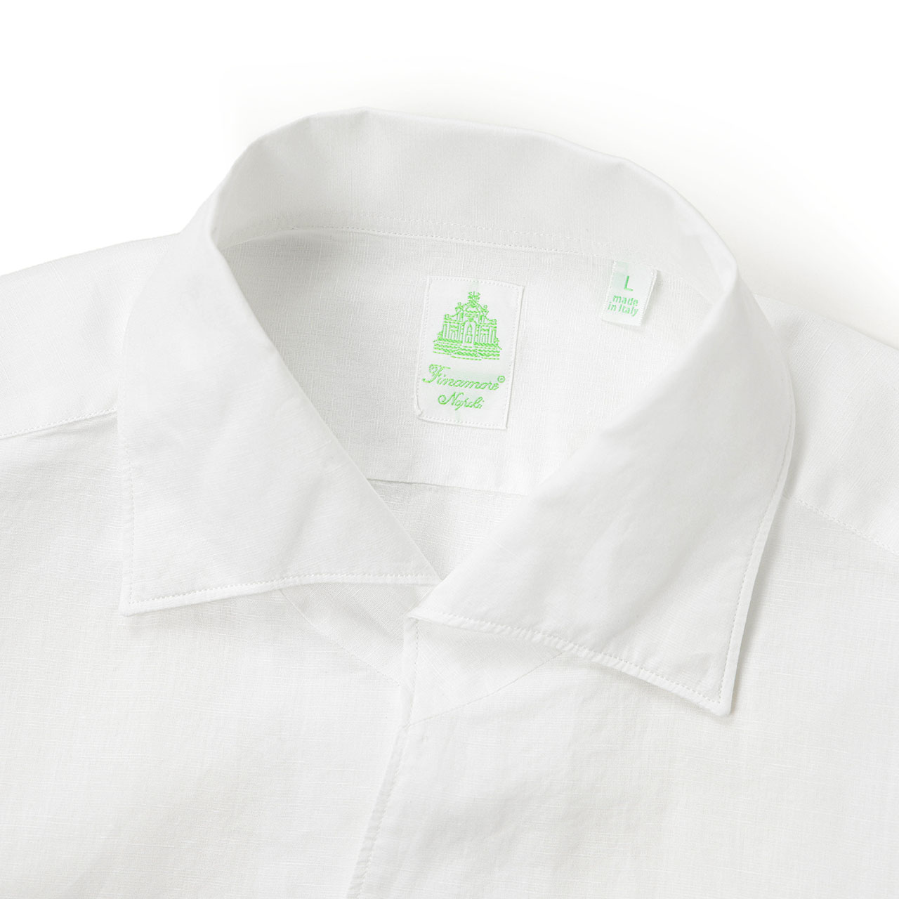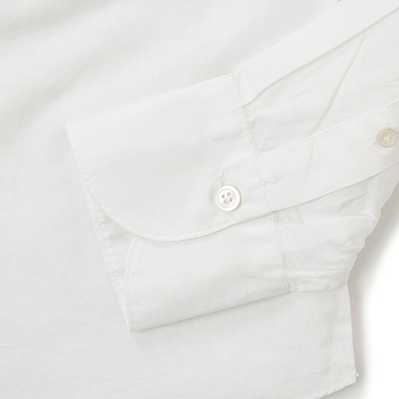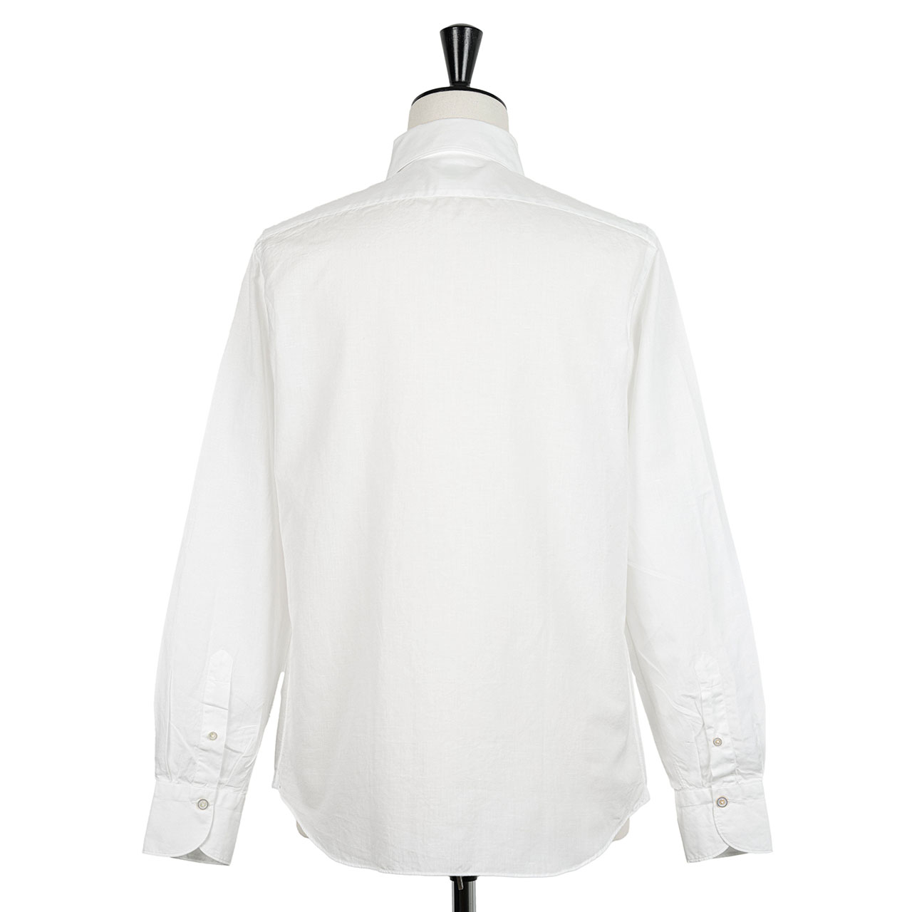 フィナモレ / 製品洗い コットン リネン イタリアンカラー シャツ ボタンダウン / MANUEL SEUL P6058 / 01 ホワイト