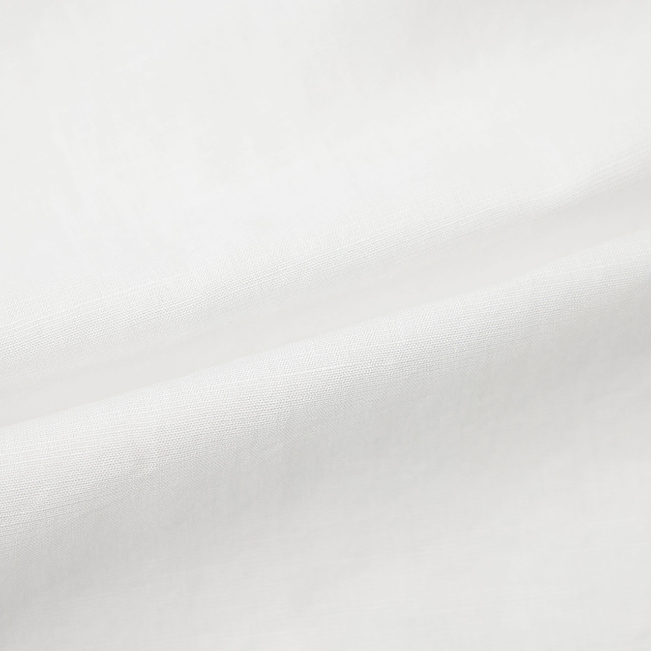 今季はコットン×リネン生地でご用意しました。リネンの柔らかさとコットンのハリが絶妙な具合で組み合わせられた生地感が特徴。製品洗いを施したことでふんわりと柔らかな風合い、こなれ感が引き出されておりスタイリングへの収まりの良さも魅力です。
