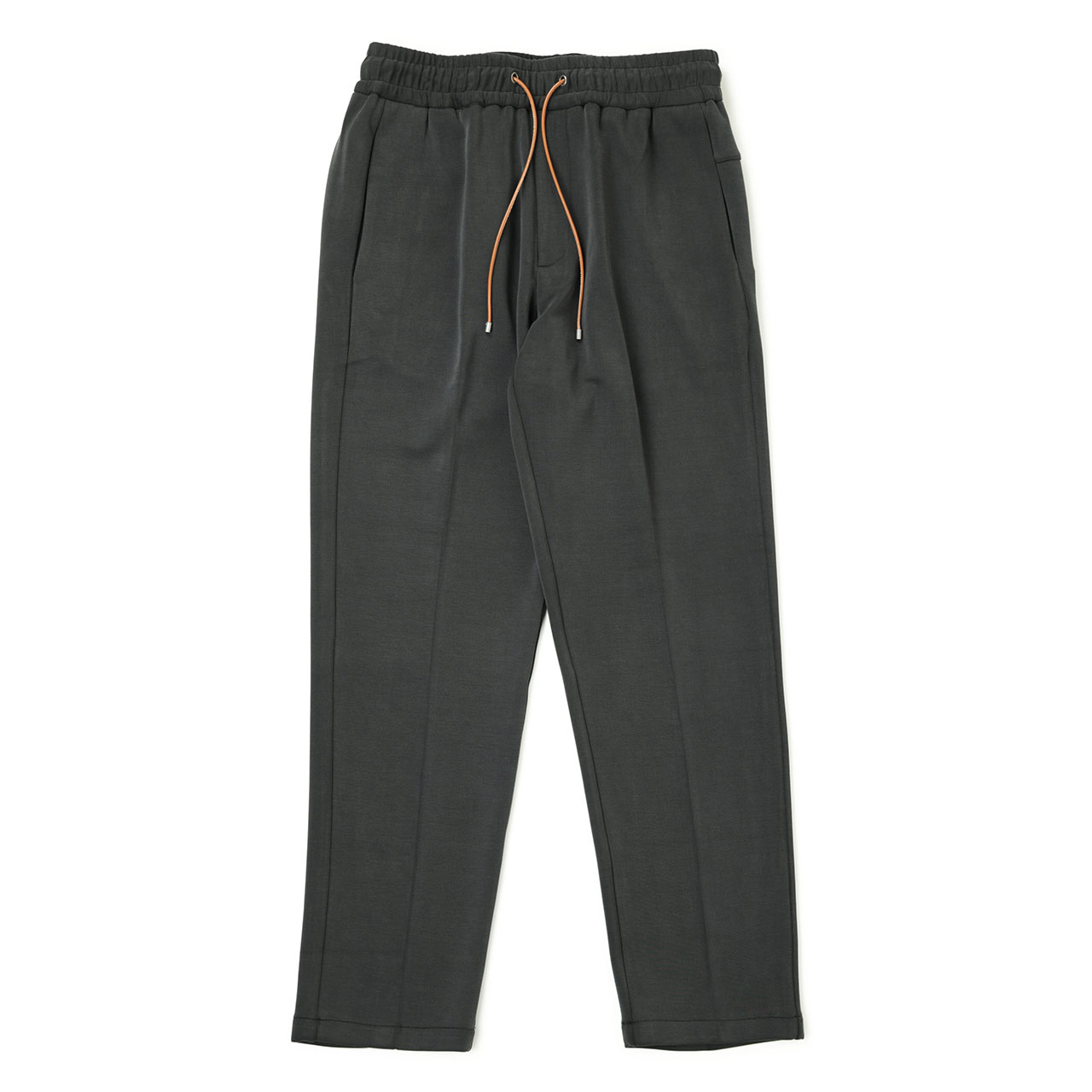 素材はレーヨン×ポリエステル×ストレッチの3者混。柔らかなレーヨンのとろみ感と滑らかな質感、ポリエステル素材の風合いと光沢感、そして高いストレッチ性からくるコンフォートな着心地。ほんのり艶っぽいこの質感があることで、大人の男性が求める「品」も備えたパンツになっております。