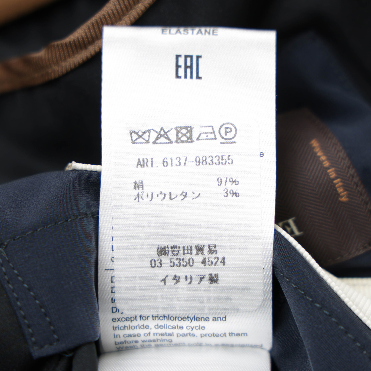 | 素材 (表地) | シルク 97%(Ermenegildo Zegna社 BOMBIX) ポリウレタン 3% |