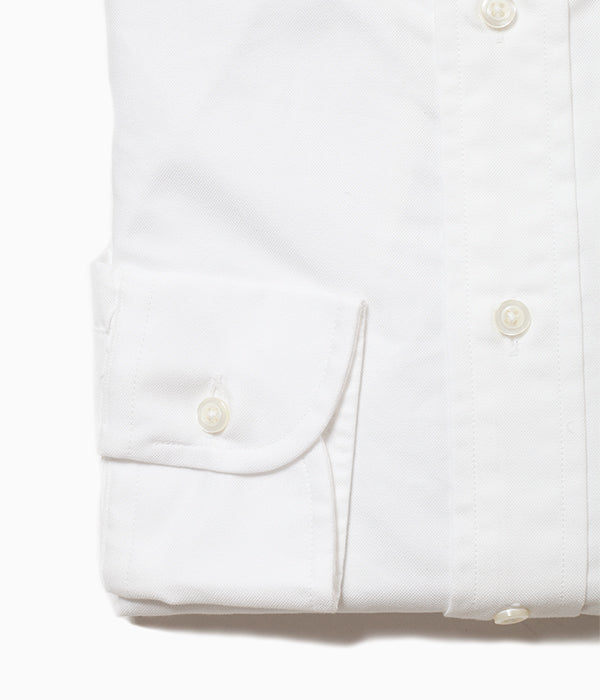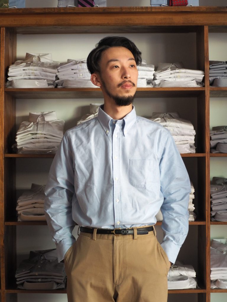 「オックスフォード」というのは縦横2本以上に糸を引き揃えて平織りされた組織の定義なので、素材や糸の太さ次第でさまざまな質感の生地が存在します。肉厚であり、且つ柔らかな手触りは経年で変化していく風合いを手にした瞬間から予感させます。古くから愛される大ぶりなロールのボタンダウンカラーがアメリカントラッドの歴史を語ります。