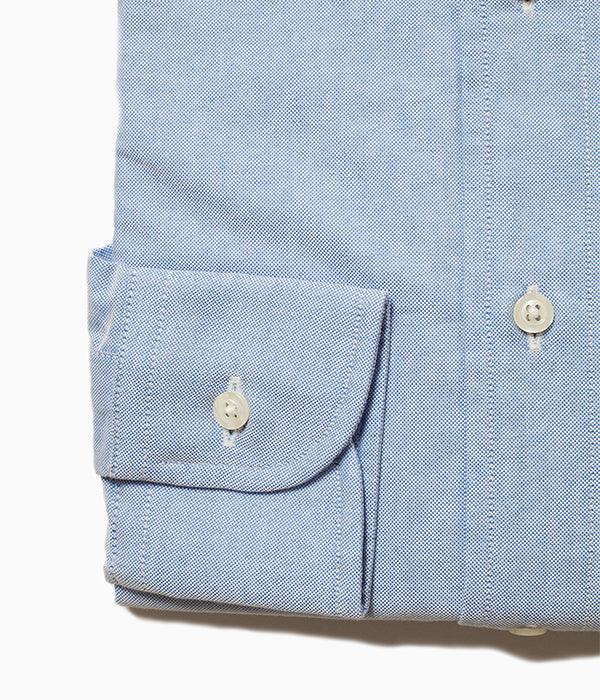 「オックスフォード」というのは縦横2本以上に糸を引き揃えて平織りされた組織の定義なので、素材や糸の太さ次第でさまざまな質感の生地が存在します。肉厚であり、且つ柔らかな手触りは経年で変化していく風合いを手にした瞬間から予感させます。古くから愛される大ぶりなロールのボタンダウンカラーがアメリカントラッドの歴史を語ります。